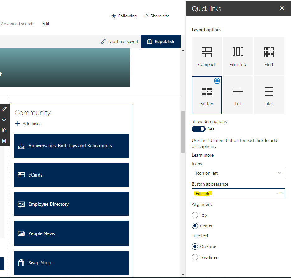 Sorry for the inconvenience caused. From your description, you find that when you select Fill color option for Button appearance, you found that the height of the buttons is getting higher compare to “Outline” button appearance. We have also test on this situation from our side. We found that the height of the buttons is changed as your description as well which the height of the buttons was increased. I understand the changes on the button size may not fit to your site design. I suggest you can send this feedback via SharePoint UserVoice, which it is the most efficient way to let the relevant product team aware this problem. Thank you for your understanding.