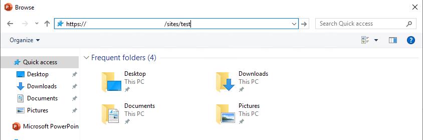 About the issue when insert it on PowerPoint client, I want to confirm how did you navigate to the SharePoint file, did you use the same steps as below: