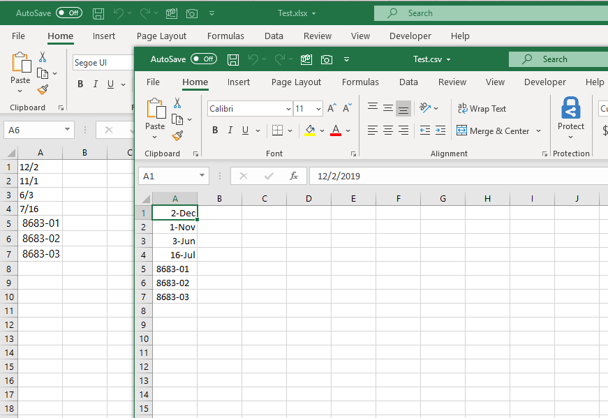 - Enter 12/2, 11/1, 6/3, 7/16, 8683-01, 8683-02, 8683-03 in .xlsx file.