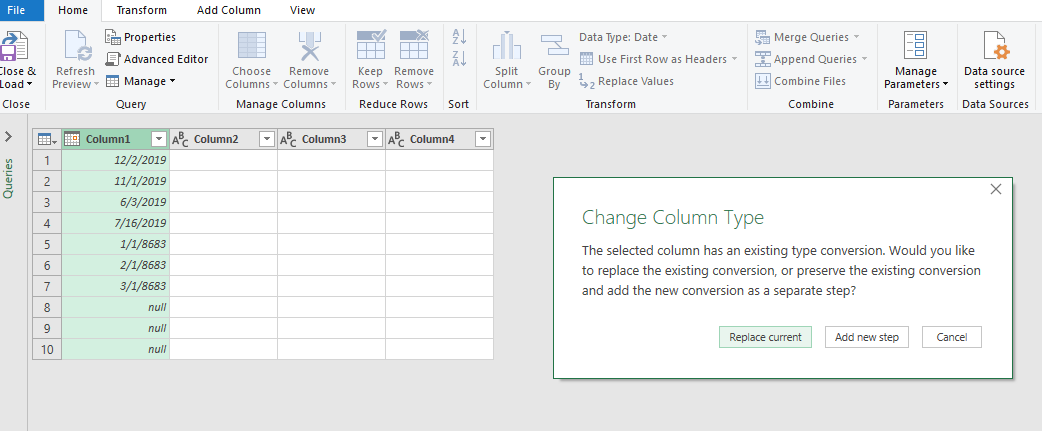 - Click Replace current-> Close&Load, then the data will keep as previous data type.