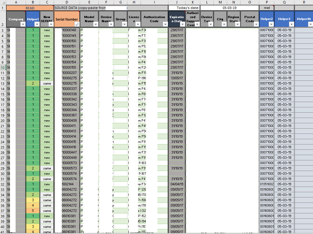 * As per your pictures your table is sorted by serial numbers, also you use helpers columns B and C