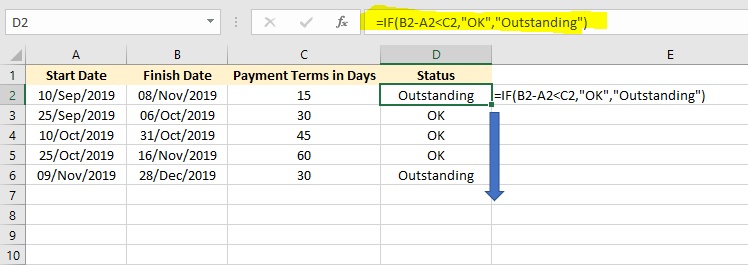 Second example, with a date of 2/9/2020 in cell E3, the number that needs to appear in cell F3 is 9.33, since the date falls within the date range of 2/8/2020-2/21/2020.