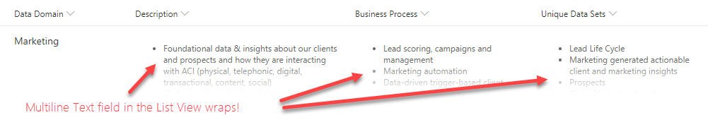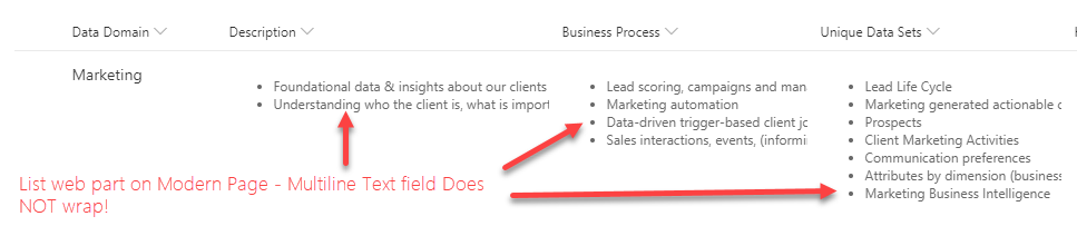 Click Edit in in the upper right of the site page -> Add a new web part in column one -> input list in the Search box -> Select List properties -> just click X in the upper right of the List Properties panel -> click Republish. Then the wrapped contents in the list should entirely show.