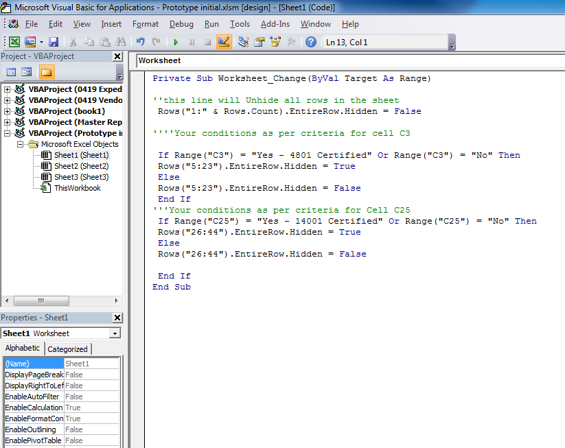 Based on the cell value in C25, I'd potentially like rows 26 to 44 hidden.