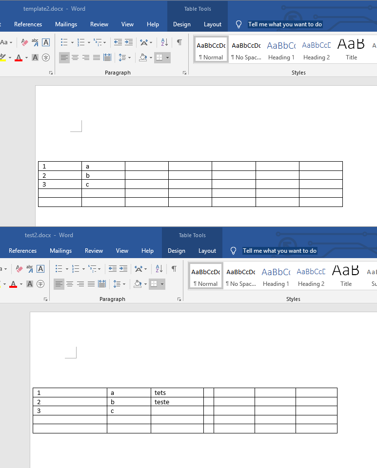 We test on our side, create a custom Word template which have tables> create and edit a file from the custom template. We can’t reproduce the situation as you descripted. Like the below picture.