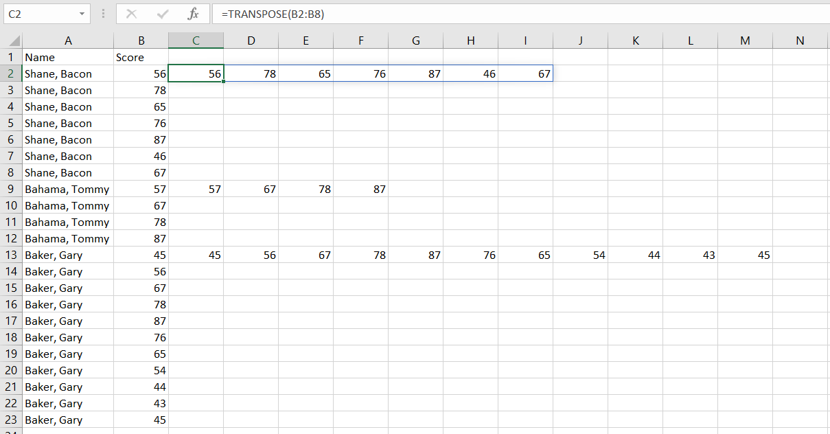To achieve your requirement, you can use TRANSPOSE function. The TRANSPOSE function returns a vertical range of cells as a horizontal range, or vice versa. The TRANSPOSE function must be entered as an array formula in a range that has the same number of rows and columns, respectively.