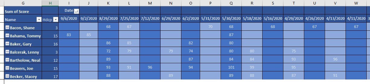 EDIT: Sorry, I don't know why the Handicap is not showing the correct sign. I formatted the field to show it, but it is not showing up. I'll keep noodling on it ...