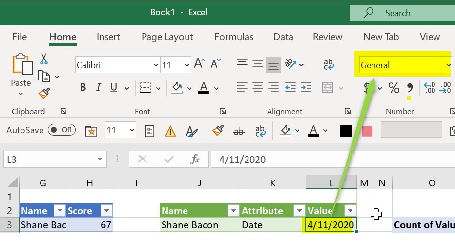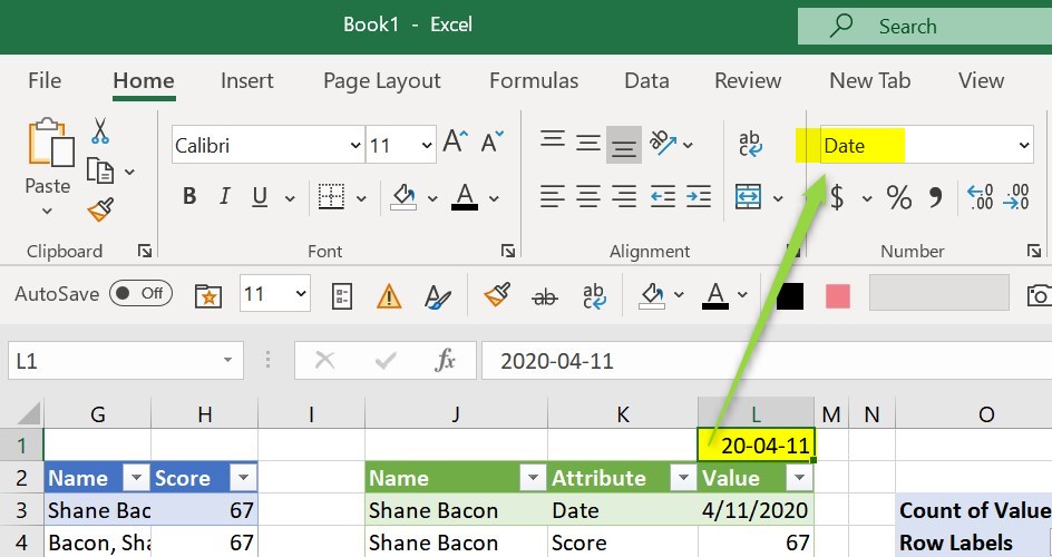 In this example I entered the date in a format that MY Excel on computer recognizes as a date, ie 2020-04-11, so Excel said