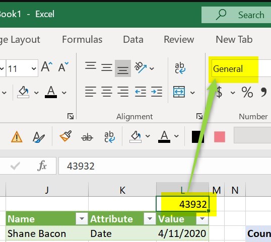 And to be even more annoying, MS stores dates as a "serial" number. So if in the example date I reset the date type to General, it shows the underlying value that Excel translates to display format: