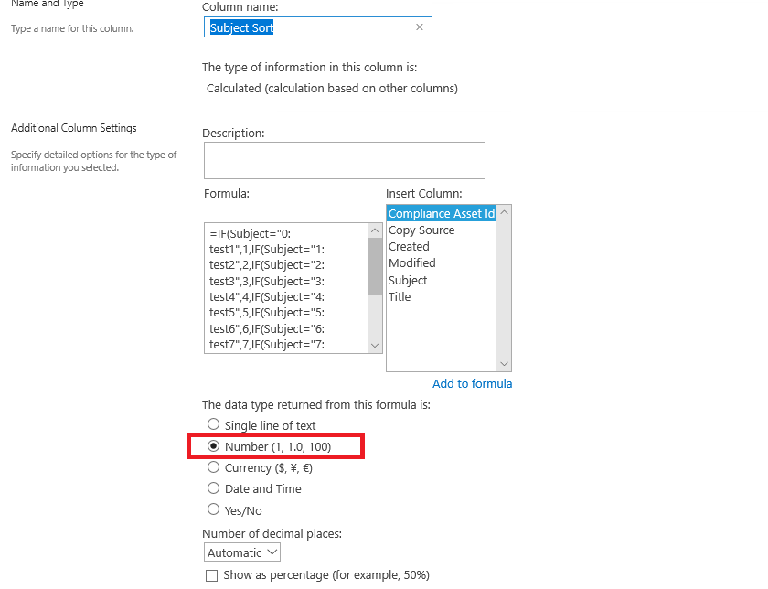 If yes, I suggest you create a calculated column naming Subject Sort to achieve your requirement. You can type the formula like the following and set the value as number.