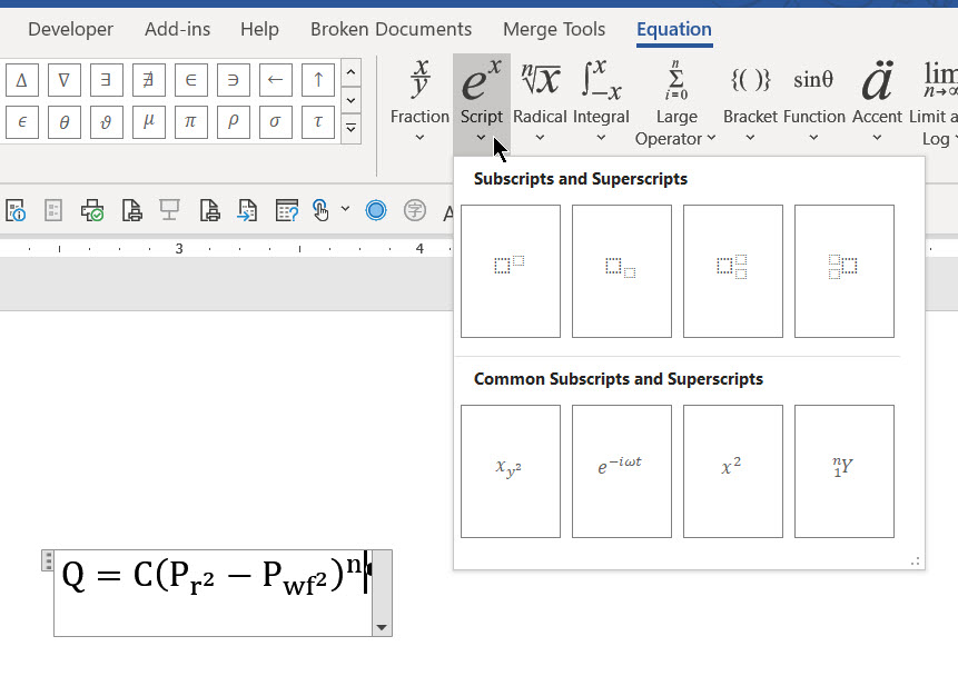 - Insert a superscript construct from the Superscripts and Subscripts gallery