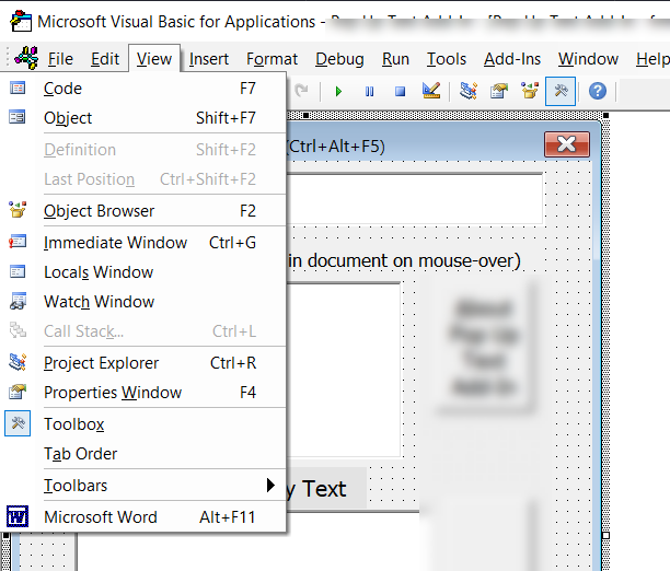 I am in the vba Editor and the UserForm has the focus on the screen.