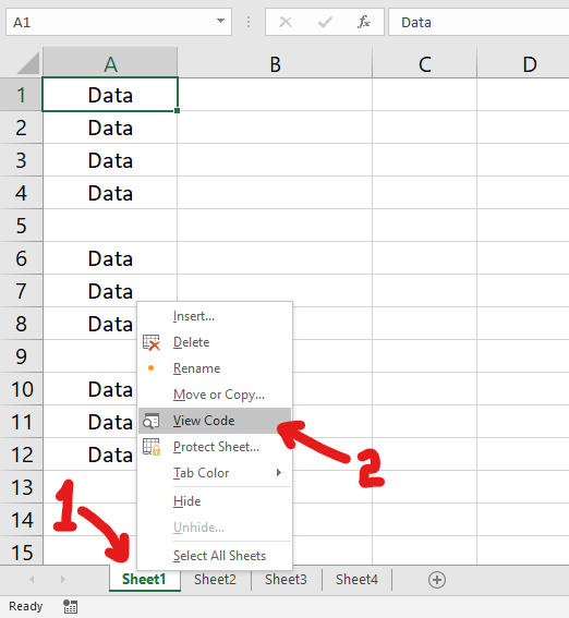 1- Right-click on the Sheet1 tab