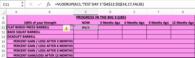 Everything else in your formula seems to make sense though. The formula is pulling data from the sheet "TEST DAY 1" so that is correct. The cell that the data is being pulled from is Q12 in the TEST DAY 1 sheet so that also makes sense. The number 2 represents