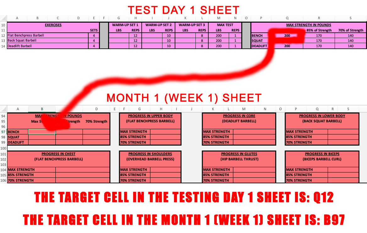 column B because the data is being inserted into cell B97 in the sheet MONTH 1 WEEK 1 so that also makes sense. And the False makes sense too.