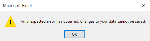 An unexpected error has occurred. Changes to your data cannot be saved.