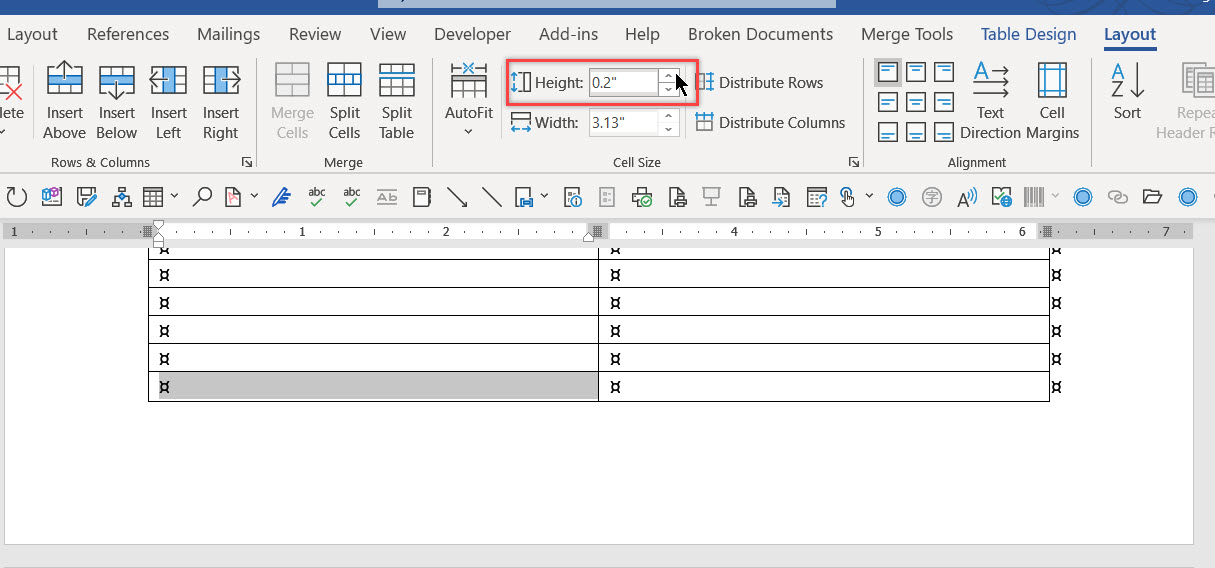 I have a table with many rows that span across many pages and I am able to adjust row height via cursor by hovering over the bottom line of a row except that with the last row on a page the cursor option is not available. I have to go into the table -> row height option. This only happens on the last row on a page.