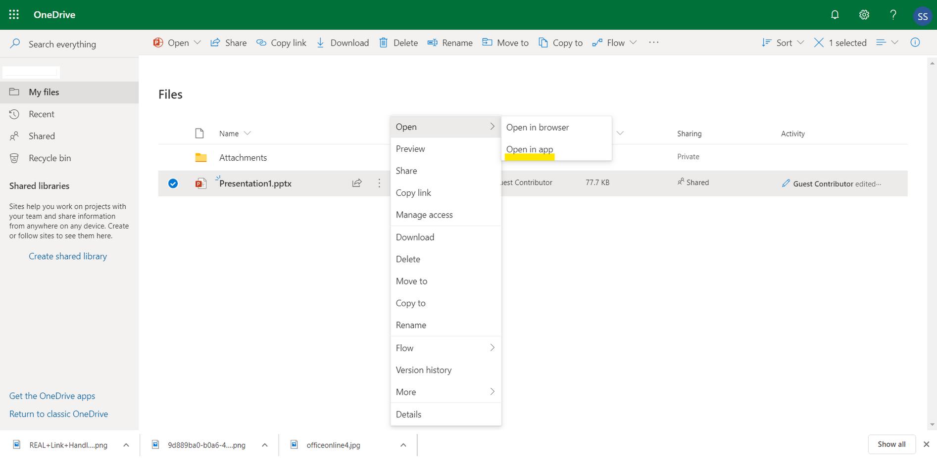 At first I thought its because Microsoft 365 business license is not installed and that could be the issue but then when I used my email and shared a ppt to his outlook email, I was able to see "Open in desktop app" option so I was wondering if the issue