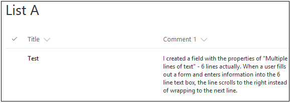 We would like to explain you when we type of column is Multiple lines of text, and by selecting ‘Rich text’ we need to press Enter to wrap them when editing**.**