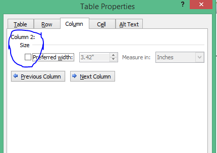 Go to Table Properties > Under Table tab, click Options... > Uncheck the box of Automatically resize to fit contents > Click OK