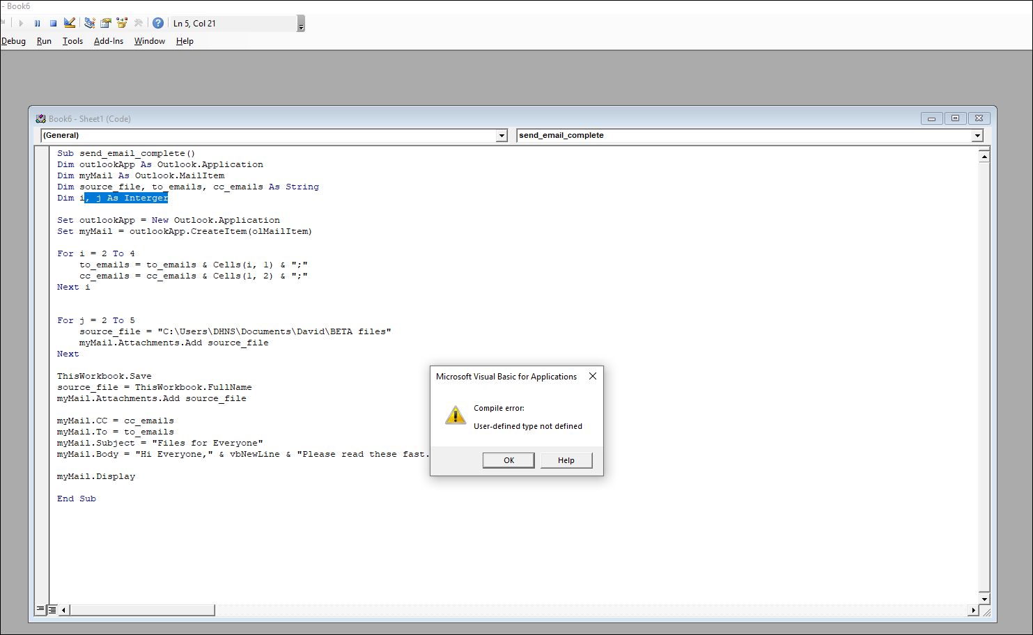 Dim ESubject, EBody As String, i As Integer