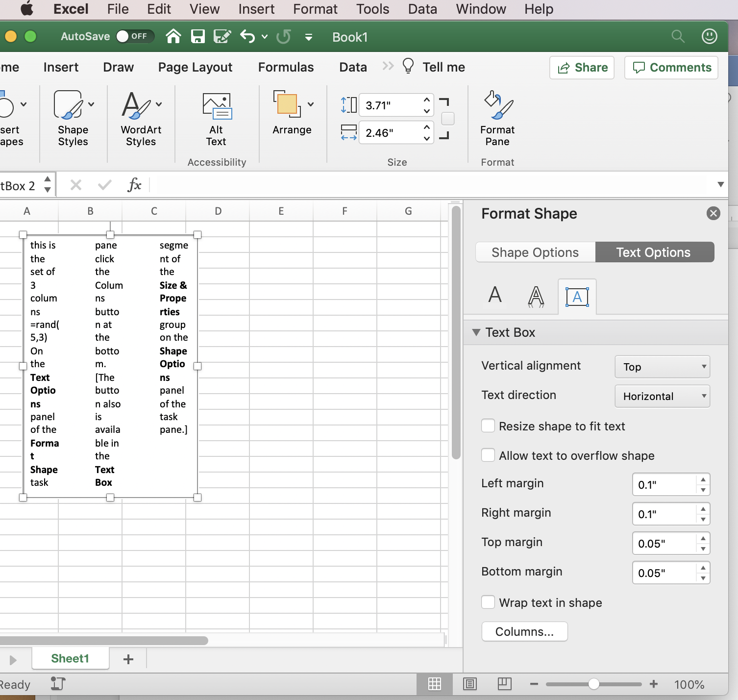 - selecting a text box & using the keyboard shortcut Shift+Command+1