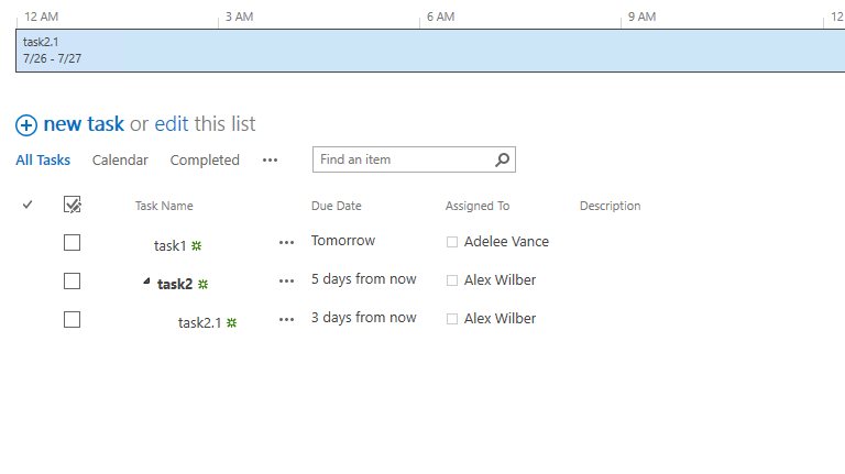 If you want to stay with the task list, you may use the CSS code to adjust the column width. To insert the CSS code, you need to contact the administrator to run Set-SPOsite <SiteURL> -DenyAddAndCustomizePages 0 in SharePoint Online Management Shell on the site to let you use the Script Editor web part. Then you can add the following example code in the web part to see the result.