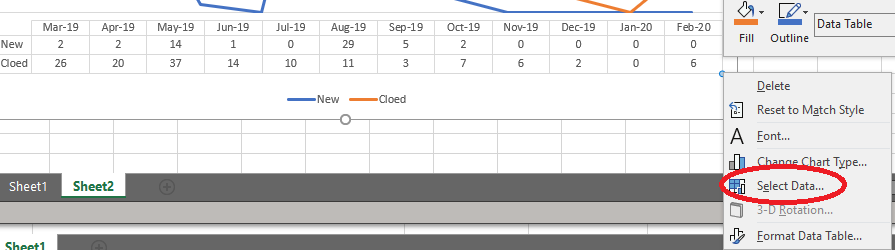 However, when you include the Mar-19 data, the Feb-20 data will appear on the Data table. You may try it by right-clicking the Data table, and go to Select Data.