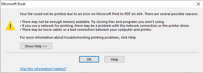 your file could not be printed due to an error on Microsoft print to PDF on e04:. there are several possible reasons: