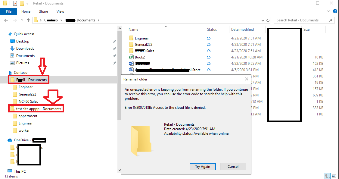 As per your description, I tested in my side when I sync SharePoint online document library to local OneDrive for business sync folder and then when I try to remove “-Document” in local sync file explorer is get same error message as you encounter . See image below for your reference.