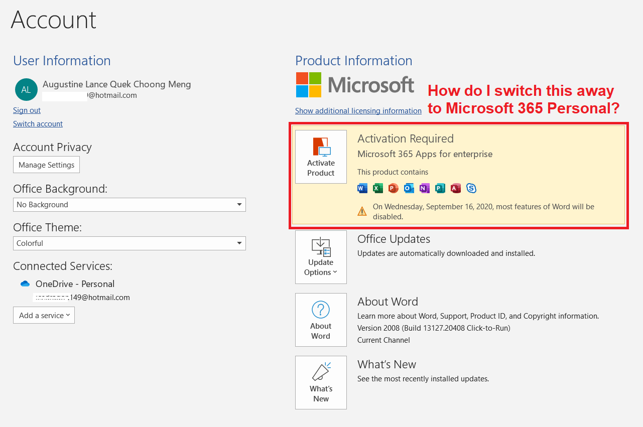 Hi I am changing the email account associated with the MS account. It was originally tagged to my college account and now, I want to migrate to my own account.