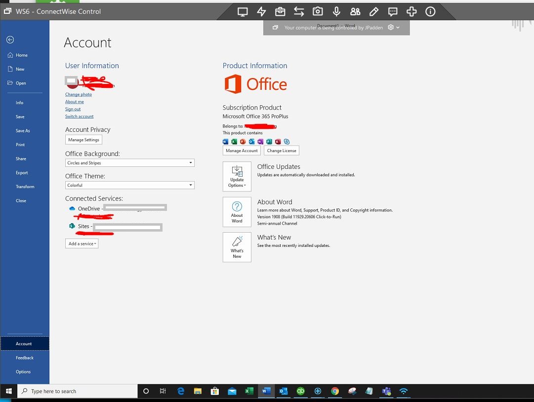 - Capture the screenshot of your Word version. (Click File> Account> full Product Informatio n page, please remove your private message.)