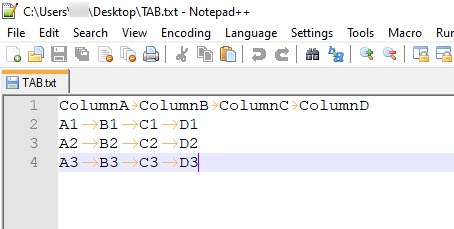 To demonstrate the problem, let's start with this tab-delimited file:
