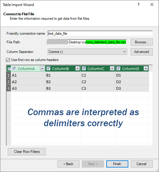 Power Pivot has no issue interpreting comma-delimited files though: