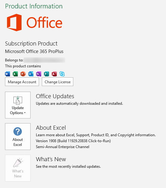 3. The older version: Version 1908 (Build 11929.20838) Semi-Annual Enterprise Channel No issue