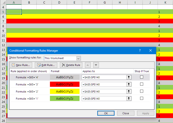 - If the cell shows "3" - the row becomes red
