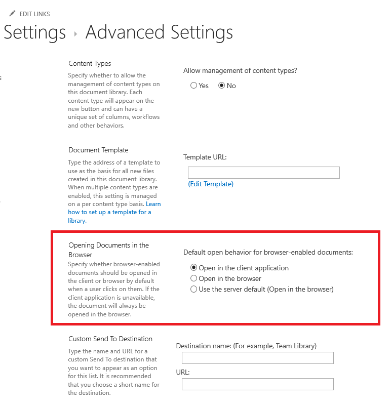 By default, in site collection, it will open in Office for Web when we click the document which the file can be opened in online. If we want to set only use “Open in App” for all the users, you can go to SharePoint Site Contents-> Library-> Library Settings-> Advanced Settings-> Opening Documents in the Browser-> Open in desktop client.