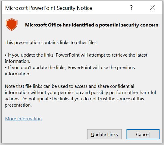 Based on the test results, we can see that when updating the links, PowerPoint will checking the content of links at the backend. And it will take longer to check for these changed links.