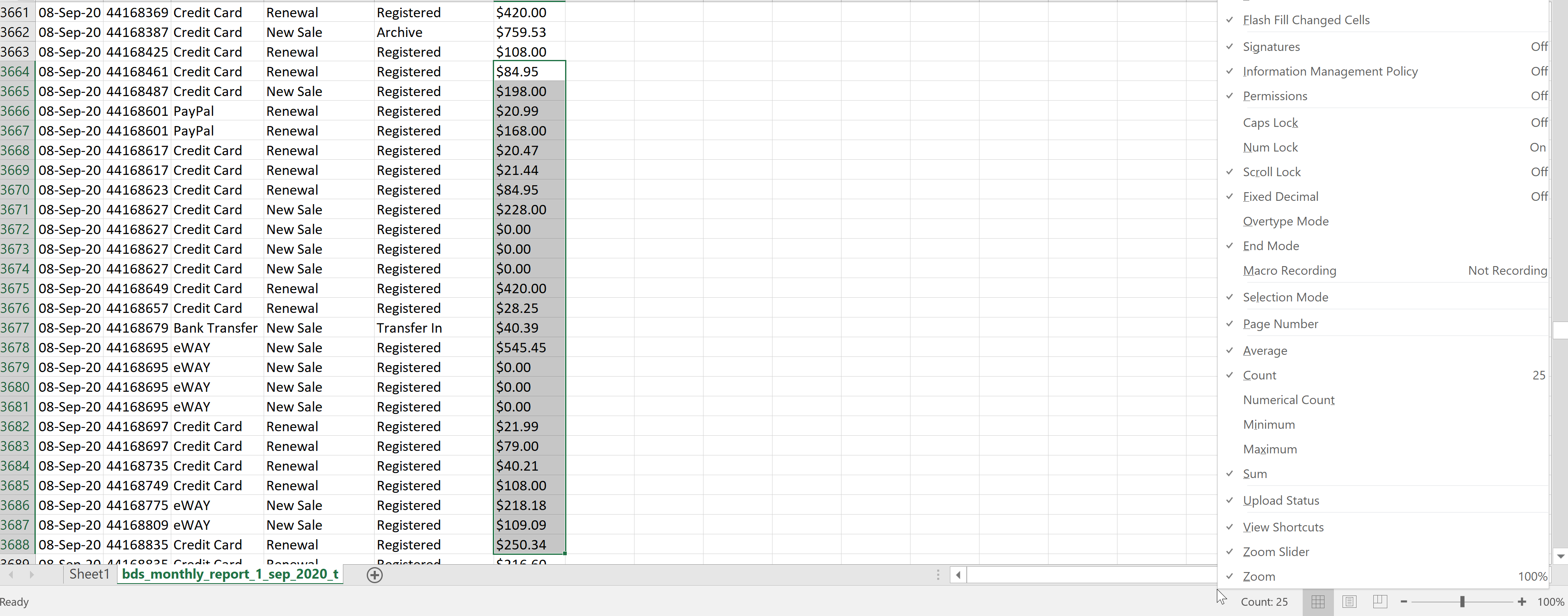 As per the first 2 screenshots, the Average and Sum is not showing up even if it is only checked to show up. It only shows the count. On the third screenshot, the pivot table doesn't show the total sales.