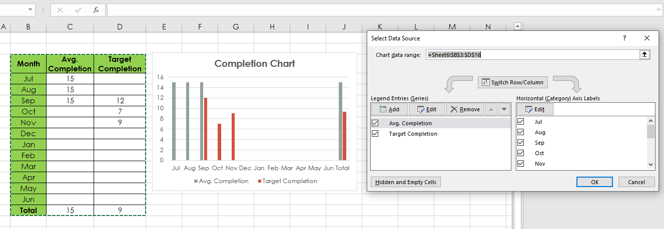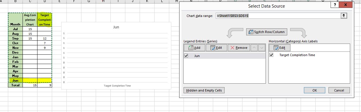 I tried creating the chart on my end using your data. i would like to know if this is the result you want to achieve? If yes, try to format your data series as shown in the screenshot I've attached below.