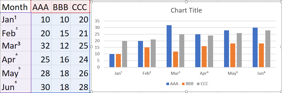 Excel chart subscript, superscript