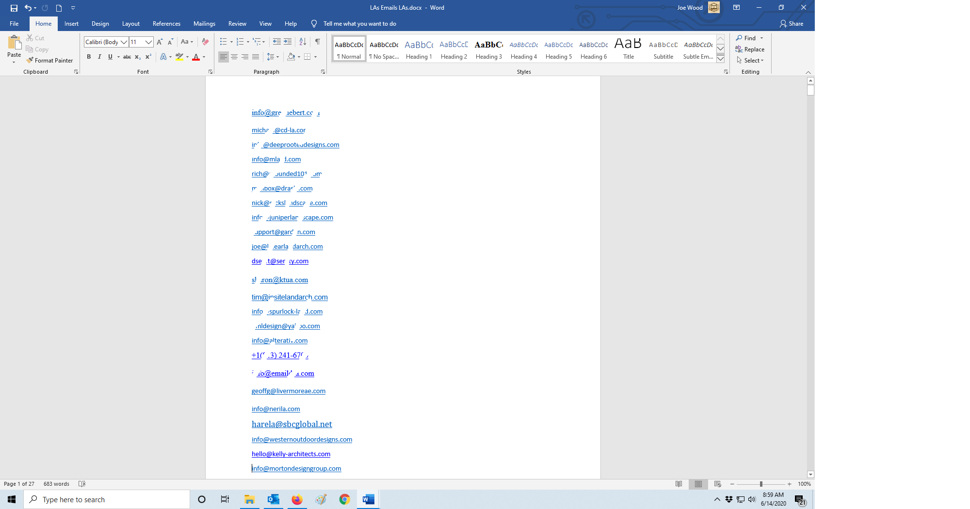 I've copied 100s of emails off of individual websites and put them in a Word 2016 doc. Is there a way to find duplicates, and delete them?? I've smeared them in this s shot.