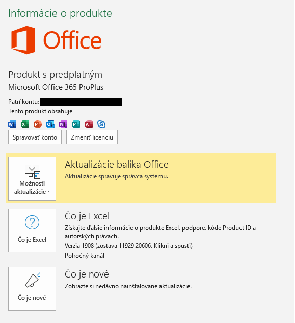 1: What is Office application’ s product information, version, update channel in this computer? You can go to File > Account > Product Information to find details and share a screenshot of “Product information” page with us.