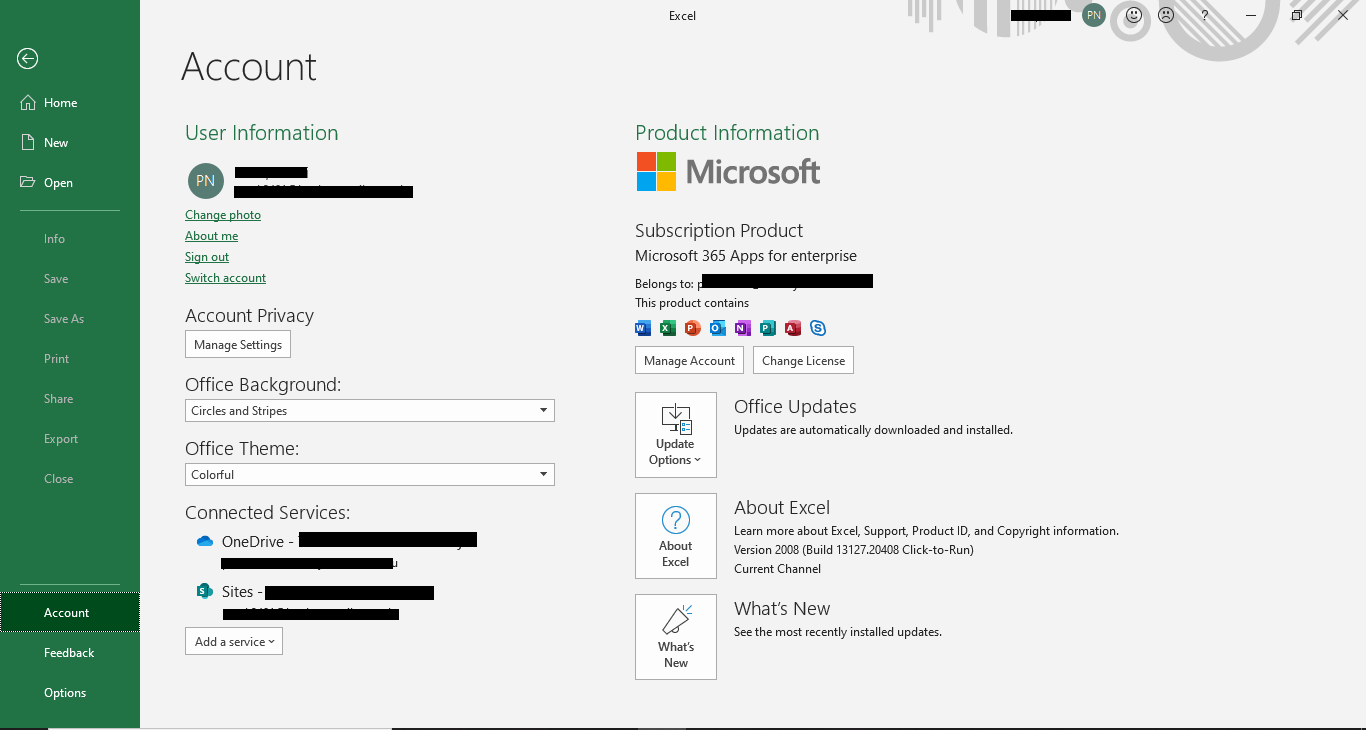 - Please provide the screenshot of Microsoft 365 Product Information. To get this screenshot, open any Office app such as Word or Excel on the affected system, click File>Account, capture the screenshot of all the information mentioned under Product Information.