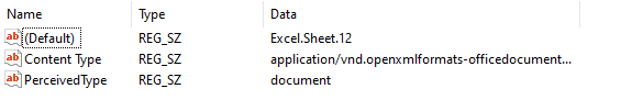 If you are using Excel workbook included Macros, please go to HKEY_CLASSES_ROOT>.xlsm.