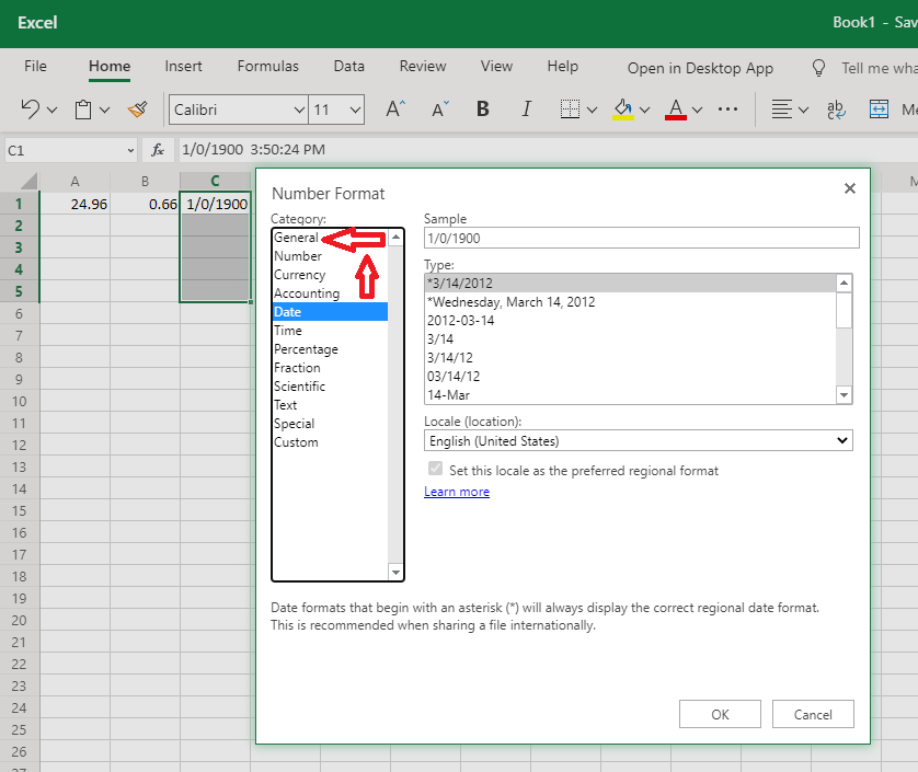 Based on my test if you cell or rang of cell format cell into date it will show incorrect value as you mention. I suggest you please try to select cell or range of cell and right-click the cell chose