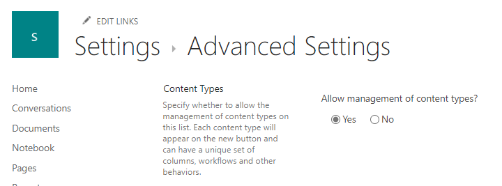 - Go to List settings > Advanced settings > turn on “Allow management of content types?” > save the changes