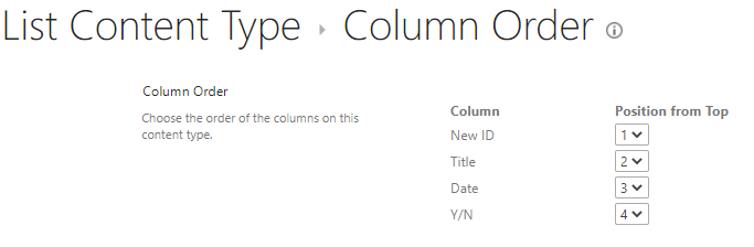 - Go back to List settings > select “Item” content type (or your custom content type) > Column order > modify the order and save the changes.