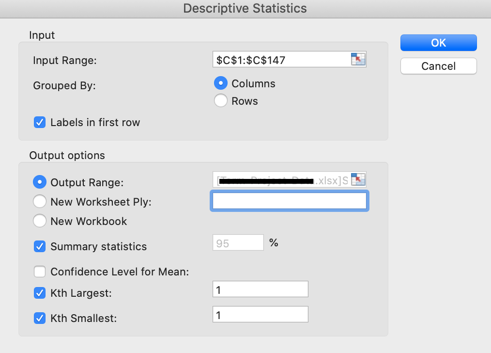 If my understanding is right, we have tested it on our side, and we created a simple data > went to Data > Data Analysis > Descriptive Statistics > selected input and Output from another workbook, as shown below: