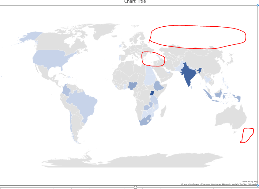 Moreover, please create a new Excel workbook and check whether the issue persists. (Make sure you select the all range when creating Map chart.) If issue persists, please share the sample file here and we will try to check it at our end. (Please save the file in cloud drive and share the access link here.)